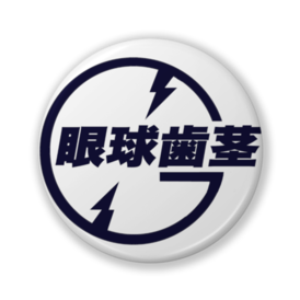 眼球歯茎ちゃんの缶バッヂ【青抜き】でございます。