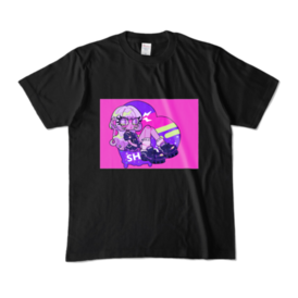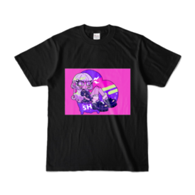 【SHIRORU Tシャツ-pink(Black)】 黒地のTシャツにピンク背景のイラストのデザインになります。 イラスト 𝐬𝐚𝐯𝐚♡𝐜𝐡𝐚𝐧様(@fishbom06) ※この商品はpixivFACTORYで作られた商品です。 サンプル画像は完成イメージのため、実物と異なる場合があります。