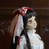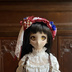 【ドール用】ヘアアクセサリー  赤ヘッドドレス市松ブルーストーン