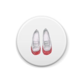小学校の思い出「赤の上靴」缶バッジ(25×25mm)