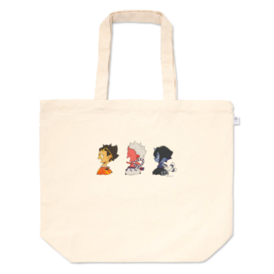 デフォルメ鬼トリオがプリントされたトートバックです。 プリントのサイズが違いますので、選択枠にご注意ください。 ⚠︎この商品はpixivFACTORYで作られた商品です。サンプル画像は完成イメージのため、実物と異なる場合があります。