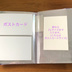 【¥550-→¥350-に価格変更しました】 お色味を紫色に統一したポスカ&フォトアルバムカバーです。内側にも布を付けているので、アルバムを入れ替える際にも使い易いつくりになっています。すぐ使えるように、アルバムも一緒に入れてお送りいたします。アルバムには、ポスカ・Lサイズ写真が40枚(2Lサイズの場合は20枚)収納可能です。 《サイズ(閉じた状態)》縦23.5cm×横18.5cm、厚み1.5cm ※数値には多少の誤差が生じますのでご了承ください。 《素材》 本体:綿、麻、ポリエステル等 プラスチック 《制作者からのお願い》 ・転売・自作目的のご購入は固くお断り致します。 ・こちらのデザインは完全非公式です。どの作品の公式でもありません。 ・ハンドメイド品ですので、ひとつひとつ丁寧にお作りしておりますが、既製品のような強度や精度には至りません。その点充分ご理解の上、ご購入いただきますようお願い致します。 ・プレゼント包装には対応しておりません。 ・汚れた場合は、濡れたふきんを固く絞って、優しく拭き取ってください。 ・折り畳んでお届けする場合は多少の折りジワが生じる場合がございます。 ・ご購入者様の過失による破損にはご対応しかねます、ご理解願います。 ・その他、何か気になる事がございましたら、BOOTHメッセージまたは当方TwitterのDMにご相談ください。