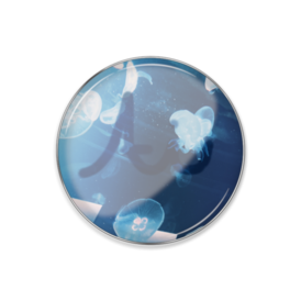 AMiU撮影のクラゲの写真に、透かしでサインを描いたものをピンバッジ化しました。 (気づいた人もいるかもしれませんが、サイトのアイコンです!) この商品はpixivFACTORYで作られた商品です。サンプル画像は完成イメージのため、実物と異なる場合があります。