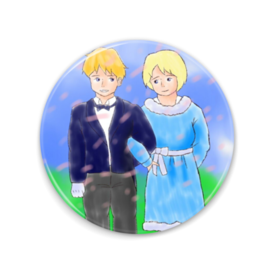 ロミオの青い空に出てくるアルフレドとビアンカが、晩餐会で着た服装でツーショットを撮るようすを描いてみました。