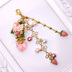 303 ピンクの苺ブーケ3連ストラップ