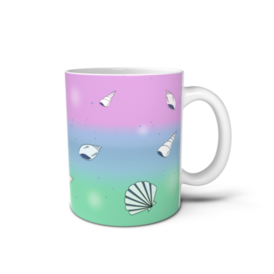 綺麗なグラデーションにキラキラと貝殻を散りばめたマグカップです。 優しい色のグラデーションは、お茶のひと時を邪魔せず寄り添ってくれることと思います。 皆様の日常に少しの癒しとくつろぎを💗