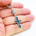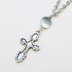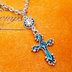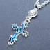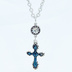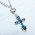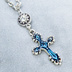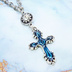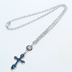 アンティークシルバー ブルーレジンのゴシック調ロザリオとラインストーンを組合せたペンダントネックレス