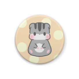 おすわりした“はむまるくん”の缶バッジ🐹(背景:オレンジ) ゆるい手描きのイラストが特徴です サイズ:約3.2cm ※サンプル画像は完成イメージのため、実物と異なる場合があります。 ※手描きを特徴としているため、イラストの完成度を求める方のご購入はお控え下さいませ