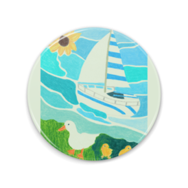 この商品はpixivFACTORYで作られた商品です。サンプル画像は完成イメージのため、実物と異なる場合があります。 2024年吉田蛍テーマ Romantic 8月 青の波間のひととき 缶ミラー