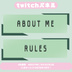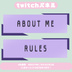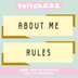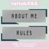 Twitchパネル素材です。 6色展開お試し2種類版です。 背景透過されています。 …内容… ABOUT ME RULES DLの際は【♥】を押して貰えると嬉しいです.ᐟ.ᐟ 商用利用可◎ ※転載、二次配布、自作発言、はご遠慮ください。