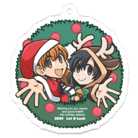 アクリルキーホルダー - 70 x 70 (mm)サンタ衣装の霞さんと、トナカイ衣装のマヤちゃんがかわいく元気にリースから飛び出した2024年クリスマスデザインのアクリルキーホルダー。 この商品はpixivFACTORYで作られた商品です。サンプル画像は完成イメージのため、実物と異なる場合があります。