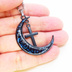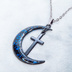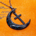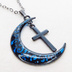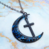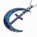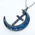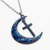ゴシック調ブルーブラックムーンネックレス ロザリオ ブラック(ガンメタル)チェーン 長さ調整可