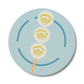 お皿に乗っているレモンのお団子を真上から見たものをコースターにしました。