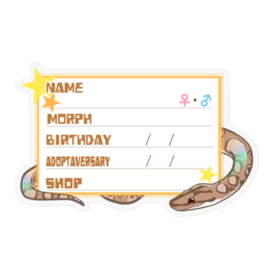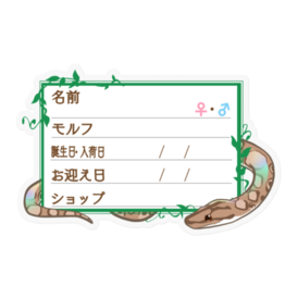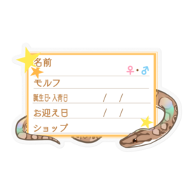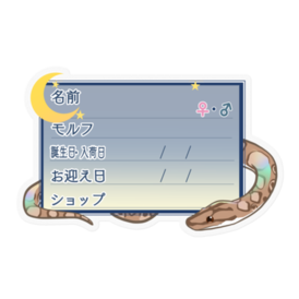 【🐍お名前ステッカー】コロニジ(ノーマル) ‐夜(英語)防水仕様のお名前ステッカーです🐍 マジックでご記入後、ケージなどに貼ってお使い下さい✨ ★文字を入れた状態でのお届けをご希望の場合、ご希望の商品名と、下記項目をわかる範囲でメッセージにてお伝えください🍀 ・お名前 ・性別 ・モルフ名 ・誕生日or入荷日 ・お迎え日 ・購入したショップ名 お名前ステッカー一覧 → https://blue-tetra.booth.pm/item_lists/mLdTYVqm DLデータ版 → https://blue-tetra.booth.pm/item_lists/myVTMMPV ≪フレームラインナップ≫ 1.ツタ 2.ツタ(英語) 3.お菓子 4.お菓子(英語) 5.ハート/ピンク 6.ハート/ピンク(英語) 7.ひまわり 8.ひまわり(英語) 9.もみじ 10.もみじ(英語) 11.リボン/ピンク 12.リボン/ピンク(英語) 13.星 14.星(英語) 15.ハート/ブルー 16.ハート/ブルー(英語) 17.リボン/ブルー 18.リボン/ブルー(英語) 19.雪 20.雪(英語) 21.夜 22.夜(英語) サイズは幅8.5cm前後です。 その他サイズ指定やホワイト(透明でないもの)、項目の変更、モルフの追加等ご希望ございましたら、メッセージ等でお気軽にご相談下さい(*'ω'*) この商品はpixivFACTORYで作られた商品です。サンプル画像は完成イメージのため、実物と異なる場合があります。