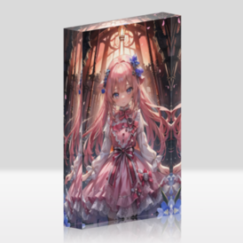 アクリルブロック ピンク髪の妖精シュヴーロズちゃん。 今日は新しいフリルたっぷりピンクのドレスを着ています。 「に、似合うかな?」