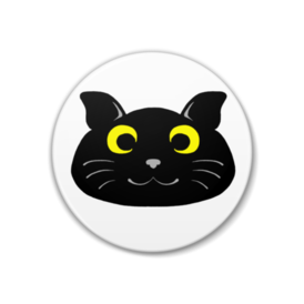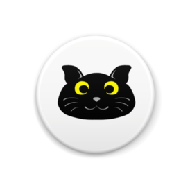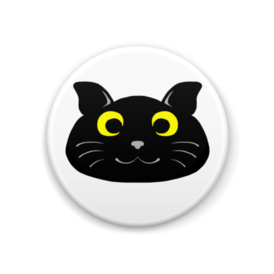 三日月の形をした目の猫の缶バッチ この商品はpixivFACTORYで作られた商品です。サンプル画像は完成イメージのため、実物と異なる場合があります。