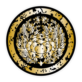 なるわん座招福家紋ステッカー・抱キ牡丹