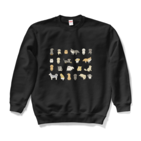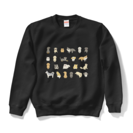 犬だらけなスウェットです! 下記の種類(色違いも含む)の犬たちが登場しています。 【犬】 ・コーギー ・サモエド ・シーズー ・柴犬/黒柴犬 ・シベリアンハスキー ・ダックスフンド ・チワワ ・パグ ・プードル ・ボーダーコリー ・ポメラニアン ・レトリバー 以下から、お好きなカラーをお選びください。 【カラー】 ・白(ホワイト) ・黒(ブラック) この商品はpixivFACTORYで作られた商品です。サンプル画像は完成イメージのため、実物と異なる場合があります。