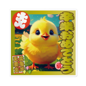 ステッカー - 100 x 100 (mm)なるわん座招福ステッカー卒業おめでとう(ひよこ)9 100 x 100 (mm)四方に収まるステッカーです。 なるわん座限定ステッカーで、 開運招福!商売繫盛!間違いなし! この商品はpixivFACTORYで作られた商品です。 サンプル画像は完成イメージのため、 実物と異なる場合があります。 ※なるわんのウェブサイト、なるわん座では、 たくさんのPNG画像が無料ダウンロードできますので、 そちらも、ぜひご利用ください! こちらです! 無料販促!面白図解!商売繫盛!なるわん座! https://naruwanza.com/