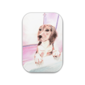 パステルビーグルペロ缶バッジ角丸51x76mmスチール