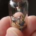 瓶・高さ約40mm 直径約15mm 主な材料・ガラス瓶、砂溶きボンド、エポキシパテ 箱サイズ56×35×17mm 灯火には蓄光塗料を使用しておりますので暗闇やUVライトで蛍光します。 ※注意事項 到着時の破損につきましては対応いたしますのでご連絡願います。 微に入り細に入り実物を見た際に見える細かな傷、 印象の違い、想像されていた色味との違い等 写真から判定できる明確な破損以外の事柄に関しては 対応できかねますのでご了承願います。 全て一点物になりますので個体差があります。 ガラス製品なので思わぬ衝撃で破損する恐れがあります。注意して取り扱ってください。 蓋のコルクは外れる恐れがあるのでアクセサリ等として使用することは絶対にお止めください。 収れん火災や劣化を避けるために直射日光を避けカビ予防のために高温多湿を避けて保管してください。 小さなお子様やペットがいるご家庭は誤飲にお気をつけください。 事故が起きましても責任を負いかねますので予めご了承ください。