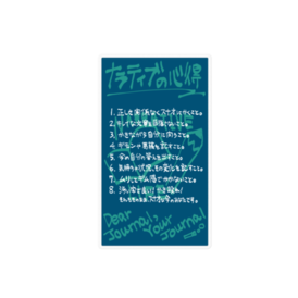 思いの丈を思う存分綴ったり、絵日記にしたり、漫画っぽく描いたり。自由にあなたらしくナラティブする為のノートの購入と一緒に如何でしょうか? あなたのナラティブを応援する【心得】ステッカーです。これを買ったらナラティブのモチベが上がるでしょう。 是非ナラティブノートに貼って使って下さい。 ※この商品はpixivFACTORYで作られた商品です。サンプル画像は完成イメージのため、実物と異なる場合があります。
