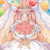 「お祝い、祝福」をテーマに花束を両手に持って幸せそうに喜ぶうさ耳のハルちゃん(オリジナルキャラクター)を描きました。