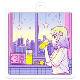 この商品はpixivFACTORYで作られた商品です。サンプル画像は完成イメージのため、実物と異なる場合があります。 窓辺で、レモンスカッシュをひと口。 どこか懐かしくて、でも新しい――そんなニューレトロな世界を切り取ったキーホルダーです。 ガラス越しに感じるやさしい風と、レモンの爽やかさを、あなたの日常にも。 A quiet moment by the window, sipping lemon squash in the gentle afternoon light. This keychain captures the essence of a “new retro” world—fresh, nostalgic, and quietly charming. Feel the soft breeze through the glass and the citrus sparkle with every glance. Perfect for adding a little pause and sweetness to your everyday.