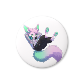 かわいいパステルカラーのキツネが描かれた、缶バッジ。
