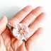一越ちりめんで作った、桜モチーフのつまみ細工ヘアゴムです。