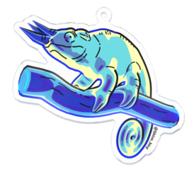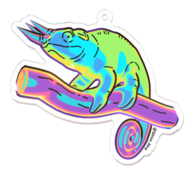 パープル・グリーンサイバーなカラーのジャクソンカメレオンアクリルキーホルダーです。 「ブルー・イエロー」と「パープル・グリーン」の2種類ありますので カラーをご確認の上、カートに入れてください。 サイズは70 x 70 mmです ※この商品はpixivFACTORYで作られた商品です。サンプル画像は完成イメージのため、実物と異なる場合があります。