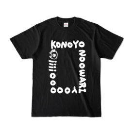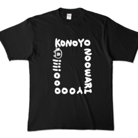 「世も末だ」というメッセージが強く打ち出されたTシャツです。 こちら、大体の私のTシャツは感心して見てくれる子どもたちがスルーしたいわくのあるTシャツです。ダサい恐れがあります。お気を付けください。 カラー版を作ったら、価格がちょっとどころではなく上がっていて驚きました。ど、どういう何の理由で!? 染料!?!?!? 夜闇に紛れるブラックです。すべての色のボトムスに合わせることが可能です。 本商品は前面にプリント加工がほどこされています。乳首を隠したい方向けです。 この商品はpixivFACTORYで作られた商品です。サンプル画像は完成イメージのため、実物と異なる場合があります。