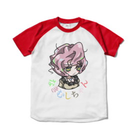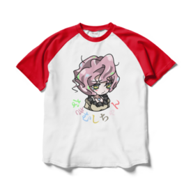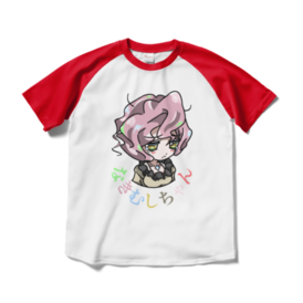 デフォルメなきむしちゃんラグランTシャツ(ホワイト×レッド)