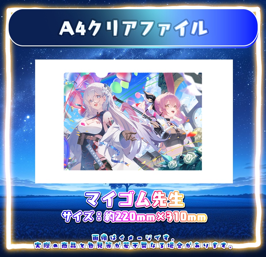 StellArt.OfficialShopA4クリアファイル【StellArt.1.5周年記念グッズ】Physical (via warehouse)1,300 JPY目前無法購買About Gift【受注期間】 2025/6/19(木)21:00 ~ 2025/6/30(月)23:59 【グッズ発送予定】 9月上旬以降 ※各グッズは受注生産のため、発送が遅くなることをご了承ください。 ◆A4クリアファイル◆ 価格:1,300円(税込) サイズ:A4 StellArt.OfficialShopGoods (Other)天硝路ろまん 誕生日記念2025StellArt.OfficialShop1,200 JPY~Goods (Other)販售結束華鉈イオ 誕生日記念2025StellArt.OfficialShop1,000 JPY~Badges販售結束缶バッジ【StellArt.1.5周年記念グッズ】StellArt.OfficialShop800 JPYGoods (Other)販售結束ステッカーセット【StellArt.1.5周年記念グッズ】StellArt.OfficialShop1,200 JPYGoods (Other)販售結束【再販】アクリルボード【StellArt.1周年記念グッズ】StellArt.OfficialShop3,500 JPYAcrylic Key Chain1周年記念 アクリルキーホルダーStellArt.OfficialShop2,000 JPYCan Badge1周年記念 缶バッジ【2着目衣装】StellArt.OfficialShop600 JPY~Can Badge1周年記念 缶バッジ【通常衣装】StellArt.OfficialShop600 JPY~VoicesStellArt. 1周年記念ボイスStellArt.OfficialShop600 JPYAcrylic Figure販售結束華鉈イオ 誕生日記念2024StellArt.OfficialShop1,000 JPY~查看更多