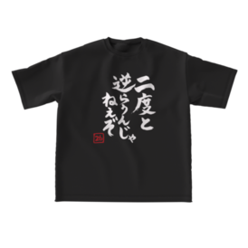 紫翠にむの名言(?)「二度と逆らうんじゃねぇぞ!」を本人が習字してプリントしたTシャツです。 ご要望にお応えしてブラックをビッグシルエットでご用意しました🎶