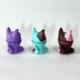 しゃもんずシリーズ「はんめ」のレジン製フィギュア 色:チョコミント (商品画像の後半は、他のしゃもんずシリーズと並べた様子で、この商品は単体の販売です。) 複製から塗装まで、ひとつひとつ丁寧に手作りしています、目以外は艶消し仕上げです。 目は硬質レジンコーティングを行っているため艶があります。 トレードマークの社員証のようなものは手描きで丁寧に着彩されています。 全身塗装しており、足裏には作家によるサインが入っています。 【しゃもんずについて】 社員証のようなものをつけたふしぎな存在 さまざまな形や色のものが見つかっている。 【サイズ】 高さ:約6㎝ /幅:約3.2㎝(正面) 【素材】 レジンキャスト (ポリウレタン樹脂) 【塗装】 サーフェイサー、水性アクリル塗料、トップコート(2層) 〈お願い〉 ※ひとつひとつ手作業で塗装しているため、色むらや個体差があります。 手作り品である旨を、あらかじめご了承ください。 ※レジン成形時にできる、ごく小さな気泡穴があることがあります。 ※足裏に塗装用に空けた小さな穴があります。 ※塗膜は、強く擦ったり、衝撃を与えることにより剥がれてしまう可能性がありますので、ご注意ください。 ※トップコートはアルカリ溶液やアルコールに弱いため、汚れた際は水を固く絞った柔らかい布やキッチンペーパーなどでやさしく拭いてください。