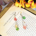 数ある作品の中からご覧いただきありがとうございます(*´ω`*) ツイステのゲーム内イベント、ハッピービーンズデーの衣装をイメージしたピアスです。 1枚目 ケイト 2枚目 ジェイド(orフロイド) 今回は農民チームしか作れませんでしたが、いずれは怪物チームの方も作りたいと思います。 はじめはジェイドをイメージして作っていましたが、フロイドも同じチームだったしフロイドイメージとしてもいいと思います。お好きなように(*´艸`*) 《ワイヤーの注意点》 ワイヤーの力だけでレジン鉱石を固定しているので、ワイヤーを曲げたり動かしたりすると取れてしまう可能性があります。 またワイヤーは簡単に曲がります、ねじっているところをもっとねじると切れます。 優しく扱っていただけると幸いです。 ピアスはパーツ交換できます。 交換希望の場合は、メッセージにてお知らせください。 (ポストピアス(金属)、ノンホールピアス(樹脂)、イヤリング(金属)) 交換無料です^^ ※サイズの目安を撮り忘れたました。気が向いたら撮ります… 台紙が縦9㎝、横5㎝なので、それで確認をお願いしますm(_ _)m