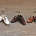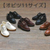 【オビツ11サイズ】爪先スリムなシューズです。 ※踵の中に小さな磁石が入っています。 ※靴紐は結び目を接着しています。 【素材】 栃木レザー等 ハトメ シルバー 【色】 ①白 (靴底 茶) ②ヴィンテージワイン (靴底 黒) ③茶 (靴底 茶) ④黒 (靴底 黒) ⑤黒 (靴底 赤) 1足ずつ手作業で丁寧に丈夫に製作しています。 同じ型の靴でも革の厚さ、伸縮具合により多少の歪みや 個体差があります。 全く同じ仕上がりにはならない事、 素人のハンドメイド品であることをご理解のうえご購入下さい。 <注意事項> ※皮革用オイル、クリーム等で仕上げ磨きをしています。 ※革本来のシワや製作過程で出来た小キズ、接着剤残り、 染料の付着等ある場合がございます。 ※通信環境により実物の色との多少の違いはご了承ください。 ※ドール本体やお洋服への色移り防止の為、 薄手靴下着用をお勧めします。長時間のご着用はお控え下さい。 【発送】 あんしんBOOTHパック匿名配送(370円)
