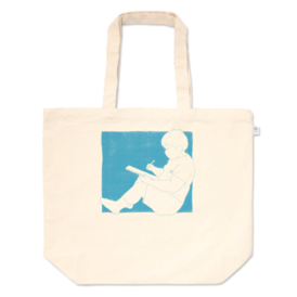 トートバッグ - L - プリント面積中木兎中学校美術部の雪八くんが絵を描いているところをプリントしたトートバッグです。 素材:綿100% 色:生成り色のバッグにブルー系のプリント 大きさ:480×400マチあり ※この商品はpixivFACTORYで作られた商品です。 ※サンプル画像よりも青が強めに出ます。