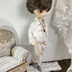 コットンサテンを使用した、チャイナボタンジャケットのセットです。 ジャケット、ラグランスリーブカットソー、ロングパンツの3点セット。 旧デザインのカンフーパンツ風のロングパンツをお求めの方は単品で出品しているのでそちらをご注文いただければ幸いです。 ※サンプル写真について 黒、臙脂は旧デザイン・セットの写真です。今回受注するのはオフホワイトと同じ仕様となりますので、ご注意ください。 単品のカンフー風パンツは旧セットのパンツとなります。 2024/3 制作時との変更点 ①セットのロングパンツを、カンフー風のものからジャケットと共布のタックパンツにしました。 ②前回は写真を撮っていないのですが、後ろ身頃のリアリティ感を上げるため中央部分を縫うことにしました。 ③裏地側に共布見返しをつけ、表地側に裏地が見えないようにしました。 チャイナボタンはゴールドの飾り紐を一つずつ結んでいます。 かなり硬めで引っ掛かりが強いため、着脱が難しいです。 チャイナボタンを取り付ける際に留められるか確認しておりますが、チャイナボタンを留める際は無理に押し込んだり、外す際に強く引っ張ったりしないよう慎重にお願いいたします。 個人的には開襟での着用がおすすめです。 黒、臙脂、紺の裏地はリバティのブレイブ・ノアを使用します。淡色のオフホワイトは柄が透けてしまうため、表地と近い無地布を裏地を使用します。 ※受注生産に関して その他の受注品の総数にもよりますが、受注生産の納期は2か月を予定しています。 トラブルにより納期が遅れる際はショップのDMから連絡いたします。 また、発送予定日を過ぎても未発送でショップから連絡がなく、かつ当ショップDMへの問い合わせにも1週間以上返答がない場合、納品が難しい状況になっていると思われるため、BOOTH事務局にお問合せしていただきご注文のキャンセルをお願いいたします。 ※Boothのシステム上、全額前払いとなっております。期日以内にお支払いが確認できない場合は自動キャンセルとなりますので、ご注意ください。 また、各ご注文ごとに送料が発生し、おまとめ発送の対応はできません。 ※ジャケットは身頃のみ裏地をつけ、袖には裏地はありません。長時間のご着用はお避けください。 ※カットソーは透け感が強いです。また、画像と実物の色は異なることがあります。あらかじめご了承ください。 ※当方環境下では色移りは確認できませんでしたが、色移り予防のため長時間の着用や高温多湿な環境での着用を避けるようお願いします。 色の濃い衣類は撮影やお出かけの後すぐに脱がせることをお勧めいたします。 ※全てハンドメイドで製作しておりますので、個体差が強くあります。 ※一部手縫いで縫い合わせております。強く引っ張ると破損の原因となりますので 着用の際はご注意ください。 モデル: ハルモニアブルーム