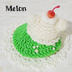 アイスにくま耳の付いた、クリームソーダの帽子です。 ソーダをイメージした帽子本体は、ラメ入りにして泡に見立てたパールを付けました。 アイスクリームは凸凹のある糸を使用してアイスの質感を表現しています。 アイスのフチも縁飾りを編んで再現しました。 小さいため分かりづらいですが、くま耳部分にも付いています。 さくらんぼは、パールカラーやラメの入ったビーズを使用しておりますので涼しげです✨️ 10~12cmのぬいちゃん用のサイズです。 頭囲18cmのぬいちゃんで少しゆとりがあります。 頭囲20cmでピッタリでした。 頭囲17~20cmまで着用確認済み。 ※発送の際はネコポスサイズに収まるよう、軽く圧縮させていただきます。 箱から出して軽く整えていただければ元に戻りますが、気になる方は宅急便コンパクトでの発送も承りますのでお問い合わせ下さい。