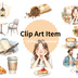 水彩タッチのカフェ風の可愛いクリップアート13点セット