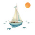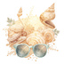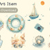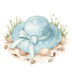 水色の海辺のバケーション 水彩アンティーク風10点セット  PNG背景透過