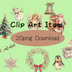 パステルアンティーク・クリスマス 水彩クリップアート20点セット(PNG)