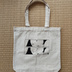 うつつ寝オリジナルのハンドメイド トートバッグです。 シルクスクリーンで一枚ずつ手刷りで制作しました。 表面のデザインに加え、バッグ背面にさりげなくロゴをプリントしました。