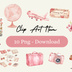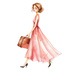 【ピンク旅行シリーズ】水彩アンティーク風クリップアート10点セット|PNG背景透過