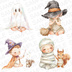 ・ハロウィンの招待状やカード作り ・SNS投稿やブログの装飾 ・スクラップブックや手帳デコレーション ・グッズやプリント用の素材として ・やさしい色合いと可愛らしい表情で、子ども向け・ファミリー向けの作品にもぴったりです。