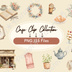 【🌿 大人可愛いカフェ】水彩クリップアート * 15点セット(PNG背景透過)
