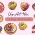 水彩画風 フルーツボウル クリップアートセット11点セット(PNG形式・背景透明)
