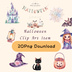 パステル水彩のかわいいハロウィーン クリップアートセット